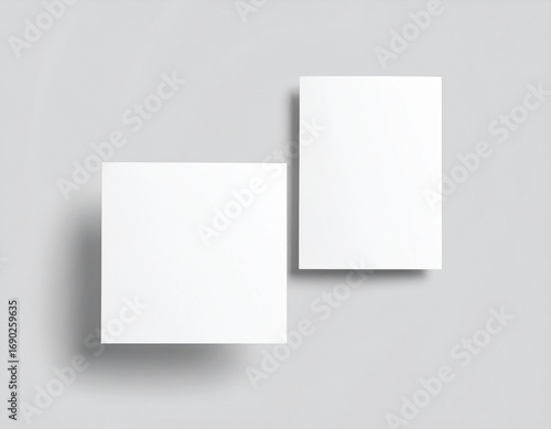 Blank folded paper mockup on gray background. Top view of empty white sheet template for flyer, brochure, invitation, or leaflet design. Minimal stationery concept with clean surface and soft shadows.