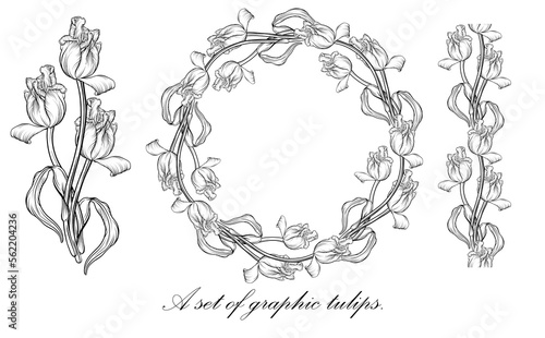 Blank frame made of stylized pink tulips. Floral wreath for romantic design, wedding invitations, advertisement
