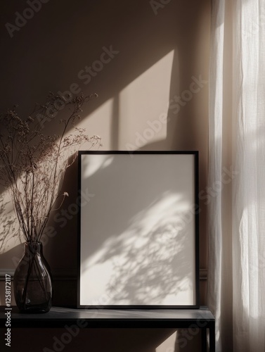 Blank Frame Mockup With Dried Flowers In A Room With Warm Light