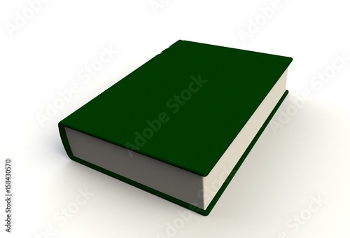 Blank green book cover on white background, 3D rendering
