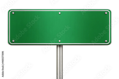 Blank green road sign, isolated on white background.