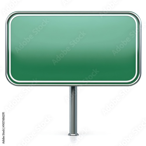 Blank green road sign on metal post