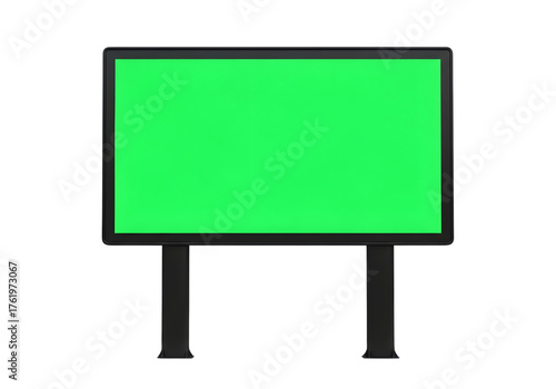 Blank green screen billboard on a stand isolated on transparent background