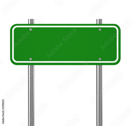 Blank green traffic road sign on white