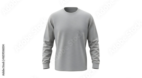 Blank Grey Long Sleeve T-Shirt Mockup on White Background