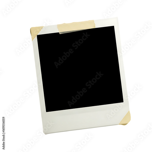 Blank Instant Photo Frame with Tape and Corners Isolated on Black Background Perfect for Mockups and Insertions