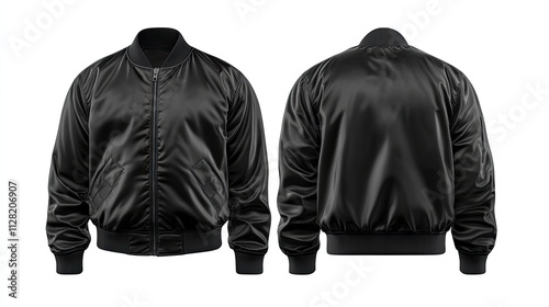 Blank jacket bomber black color isolated on white background. Bundle set of black jacket in front and back view suitable for mock up template.