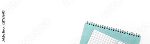blank lined notebook with opened pages and bleu celeste colored spiral notebook on white background, copy space, isolated