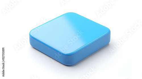 Blank Mobile application icon, button - blue square with round corners. 3d rendering, white background