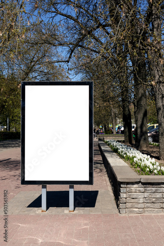 Blank mock up vertical billboard street poster on city background. media blank white modern panel, signboard for advertisement design. Mockup, mock-up, mock up