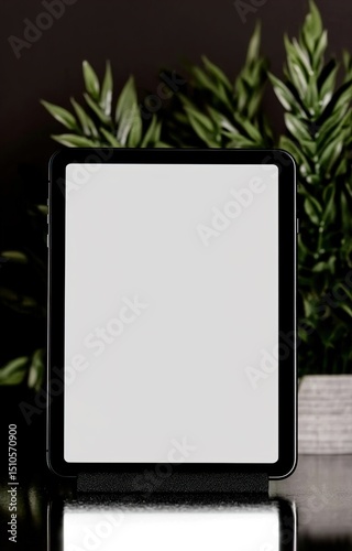 Blank mockup of a tablet with a builtin kickstand for handsfree viewing and video calls.