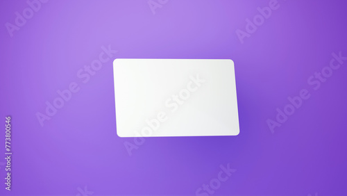 Blank mockup one bank (gift) card with shadows on purple background. Debit card mock up. Name card design mock up presentation.
