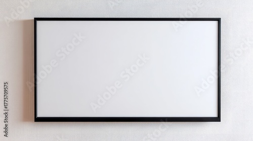 Blank modern TV screen mockup with black frame on light textured wall, ideal for digital display presentation, technology advertisement, or minimalist interior design concept