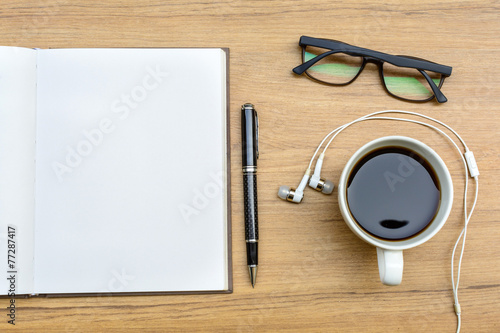 Blank note book with coffee