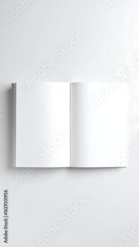 Blank open book on white surface