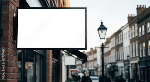 Blank Outdoor Shop Sign on Brick Wall