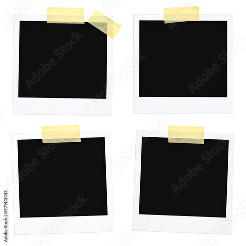 Blank Photo Frames: A collection of blank photo frames taped with yellow adhesive, ready to capture and preserve memories, symbolizing anticipation and nostalgia.