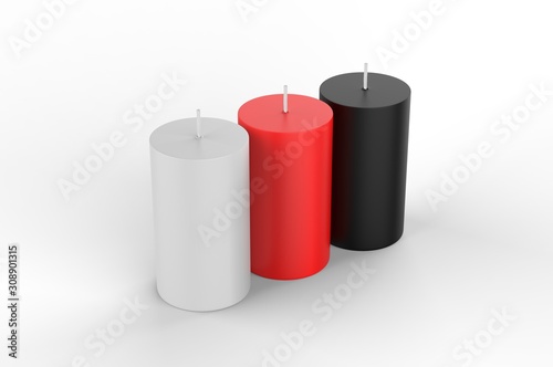 Blank Pillar Scented & Colorful Candle For Branding, 3d render illustration.