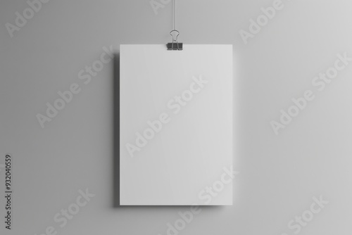 Blank Poster Mockup With Paper Clip on Grey Wall in Minimalistic Style