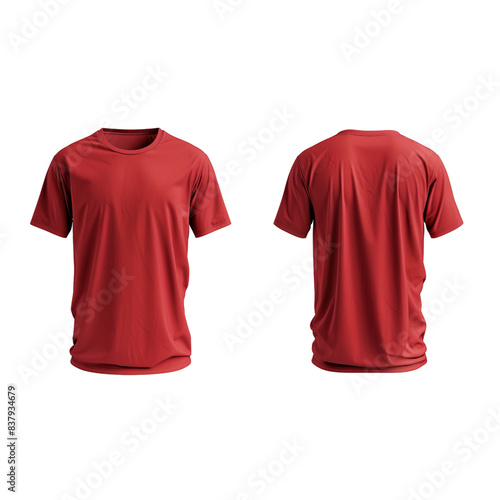 Blank Red T-Shirt Mockup Template, Front and Back Isolated Transparent, Generative AI