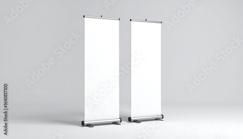 Blank Roll Up Banner Stands Mockup on White Background for Advertisement.