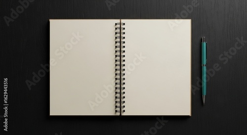 Blank Spiral Notebook and Pen on a Dark Textured Surface Perfect for Writing Notes and Ideas
