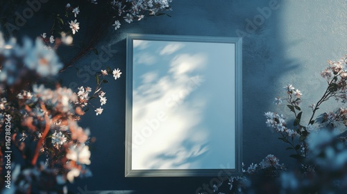 Blank square frame on black wall