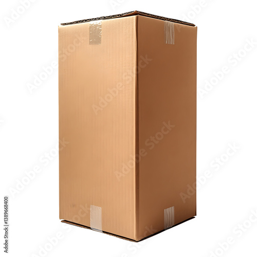 Blank tall brown cardboard box on a transparent background --s 750