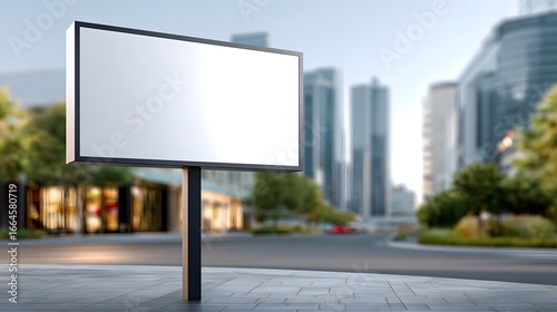 Blank Urban Billboard for Advertising in Modern Cityscape with Skyscrapers Under Clear Sky