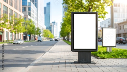 Blank Vertical Billboard Mockup on City Street with Blurred Background