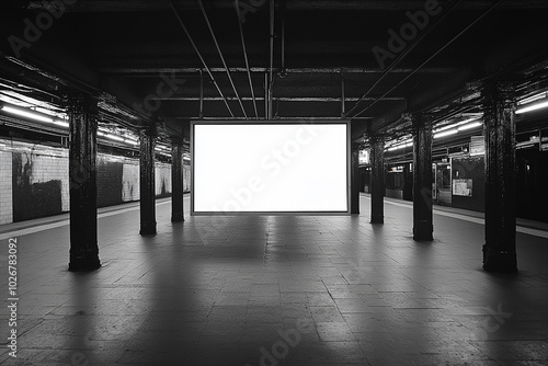 Blank white billboard mockup in train station