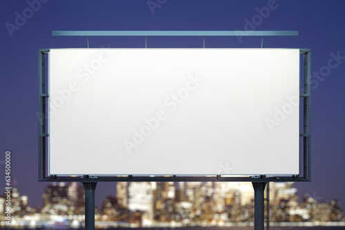 Blank white billboard on cityscape background at evening, front view. Mock up, advertising concept