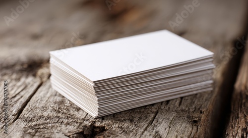 Blank white business card stack on distressed wooden desk