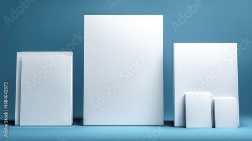 Blank white canvases/posters/prints in various sizes on a teal background