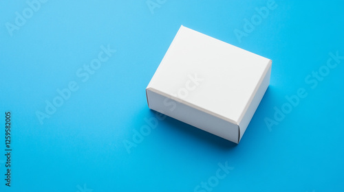 Blank White Cardboard Box on Blue Background Product Mockup Template Design empty clean shape image