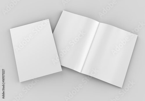 Blank white catalog, magazines,book mock up on grey background. 3d render illustration.