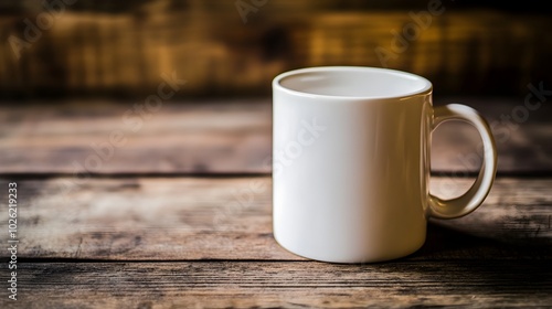 Blank White Ceramic Mug on Rustic Wooden Table