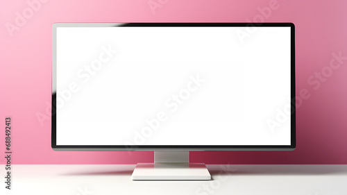 Blank white display screen mockup. Modern monitor template with Copy space. Isolated on solid background.