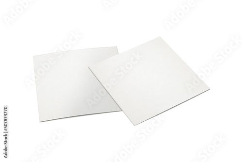 Blank white double square leaflet mockup isolated on white background. Bifold brochure mock up template. 3d rendering.Square Brochure .Isolated blank open square greeting cards on white.