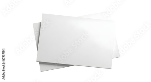 Blank white paper cards overlapping on a white background, perfect for graphic design and branding projects