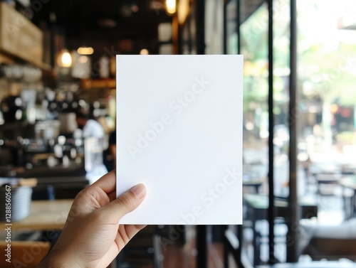 Blank White Paper Mockup in a Cozy Coffee Shop Setting, Perfect for Menu or Advertisement Design