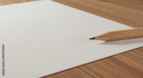 Blank White Paper with a Wooden Pencil Ready for Writing and Drawing