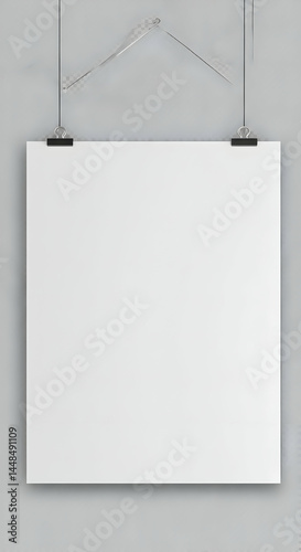 Blank White Poster Mockup Hanging on Grey Wall Perfect for Presentations and Marketing Campaigns Ideal for showcasing your designs and artwork instantly elevates your projects