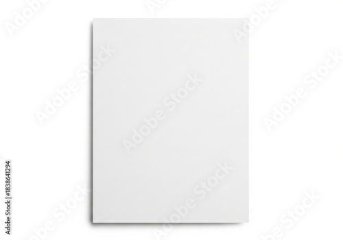 Blank white rectangular sheet of paper casts a subtle shadow on a light background