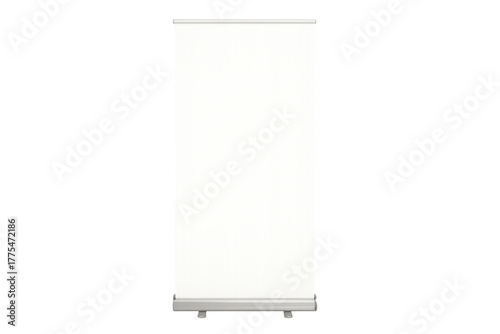 Blank white roll-up banner stand showcasing advertising space for company promotion or event marketing design