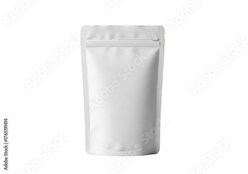 Blank white stand up pouch with zipper closure isolated on transparent background