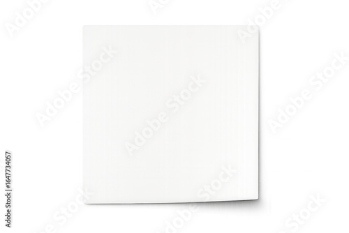 Blank white sticky note with curled edge casting delicate shadow against translucent surface
