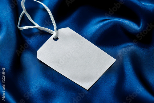 Blank White Tag on Blue Silk Fabric: Elegant Branding Mockup