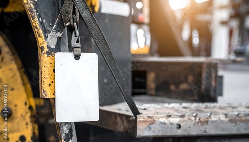 Blank White Tag on Weathered Industrial Machine