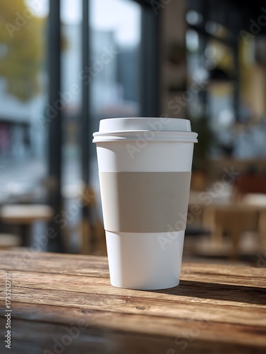 Blank white takeaway disposable paper kraft coffee cup isolated mockup or mock up template on light grey background Front view